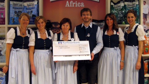 Interquell spendet von jeder verkauften Packung "Happy Dog Africa" je nach Packungsgröße bis zu 1,30 € an das SOS-Kinderdorf für Schulen in Afrika. Das Unternehmen möchte damit soziale Verantwortung zeigen und übergab auf der Interzoo einen Scheck in Höhe von 40.000 € an Bärbel Bebensee, Leiterin des SOS-Berufsausbildungszentrums in Nürnberg. Die Spende kommt der SOS-Hermann-Gmeiner-Schule und dem SOS-Berufsausbildungszentrum in Kigali, der Hauptstadt Ruandas, zugute.