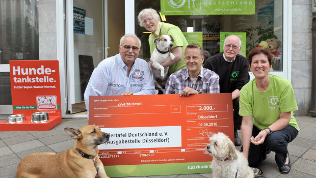 Die Düsseldorfer Futter-Ausgabestelle der Tiertafel Deutschland hat von der Fachhandelskette Fressnapf eine Spende von 2.000 € erhalten. "Diese Spende hilft uns, die Futterverteilung an die Tierhalter in Düsseldorf aufrechtzuerhalten", sagt Gerd Weber, Leiter der Ausgabestelle. "Außerdem können wir damit die Mietzahlungen für unsere Räume in den nächsten Monaten bestreiten." Zu dem schon überreichten Scheck über 2.000 € soll von Fressnapf noch eine weitere Spende von 4.000 € kommen, die aus den Erlösen beim diesjährigen "Dog Event Düsseldorf" zusammenkommen soll. Die Tiertafeln haben in Deutschland insgesamt 26 Ausgabestellen. Dort wird unter anderem Tierfutter und -zubehör ausgegeben und Tierhalter können sich bei Problemen von Fachleuten beraten lassen.