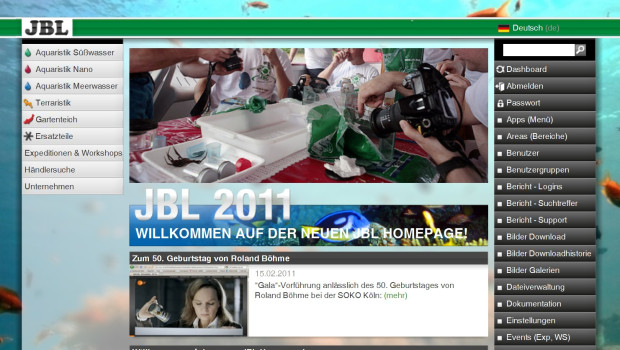 Im Zuge der komplett neu aufgebauten JBL-Homepage wurden alle Produkte mit der Stamm-Datenbank im JBL-Werk vernetzt, so dass Aktualisierungen und neue Informationen direkt online erscheinen. Als weltweit einzige Online-Hilfe für Teichbesitzer sieht JBL das firmeneigene Teichlabor. In einem Abfragepool wird über das Internet jetzt auch die Uhrzeit der Messung des pH-Wertes in die Auswertung der Daten einbezogen, um die richtige Hilfestellung bei Algenproblemen zu geben. Neu auf der Website sind auch Minifilme, die bei ausgewählten Produkten ablaufen sowie die Downloadmöglichkeiten von Bildern, auf die JBL-Partner nun direkt zugreifen können.