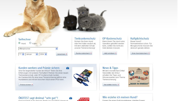 Die Heimtierversicherung Agila präsentiert sich im Internet mit einer neuen Homepage. Die Seite wurde laut Unternehmen komplett umgestaltet und soll einen Überblick über die Leistungen des Versicherers geben sowie Wissenswertes aus dem Tierreich vermitteln. Wen die Leistungen der Agila überzeugen, kann sein Tier auch direkt online versichern. Ein Tarifrechner informiert zudem über mögliche Angebotsvarianten.