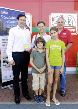 Fressnapf und Nestlé Purina Petcare haben im Zuge der Kampagne „Mein Katzenglück“ eine Städtetour durch den Big Apple verlost. Gewonnen hat die Reise Sabine Hahn, die ihren Teilnahmeschein im Fressnapf Markt von Gerhard Huss in Rödermark abgegeben hatte. Mit nach New York kommen Hahns Mann und die zwei Kinder.