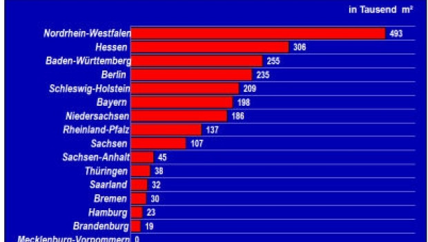 Auch für die kommenden Jahre ist von einer starken Centerexpansion auszugehen: So werden in diesem Jahr voraussichtlich weitere 25 Center hinzukommen. Untersucht man die 112 Centerplanungen bis zum Jahr 2015 nach Bundesländern (siehe Grafik), so zeigt sich für Nordrhein-Westfalen mit 24 Planungen und einer projektierten Geschäftsfläche von rund 493.000 m² eine besonders expansive Entwicklung. Ein bedeutendes Wachstum zeichnet sich auch für Hessen und Baden-Württemberg ab.