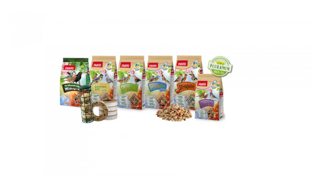 Ob Blaumeise, Specht oder Rotkehlchen: Das gesamte Jahr über können Wildvögel in Gärten oder auf Balkonen bestaunt werden. Um die Tiere in ihrer täglichen Nahrungsaufnahme zu unterstützen, bietet Panto Heimtier ein abwechslungsreiches Sortiment, bestehend aus artgerecht konzipierten Streufuttern, Knödelprodukten, Futterstangen und Einzelkomponenten wie Sonnenblumenkernen oder Erdnüssen. Enthalten ist darüber hinaus das eigens entwickelte „Vitalkörnchen Pluramin“, das das Wohlbefinden und die Vitalität der Tiere stärken kann.